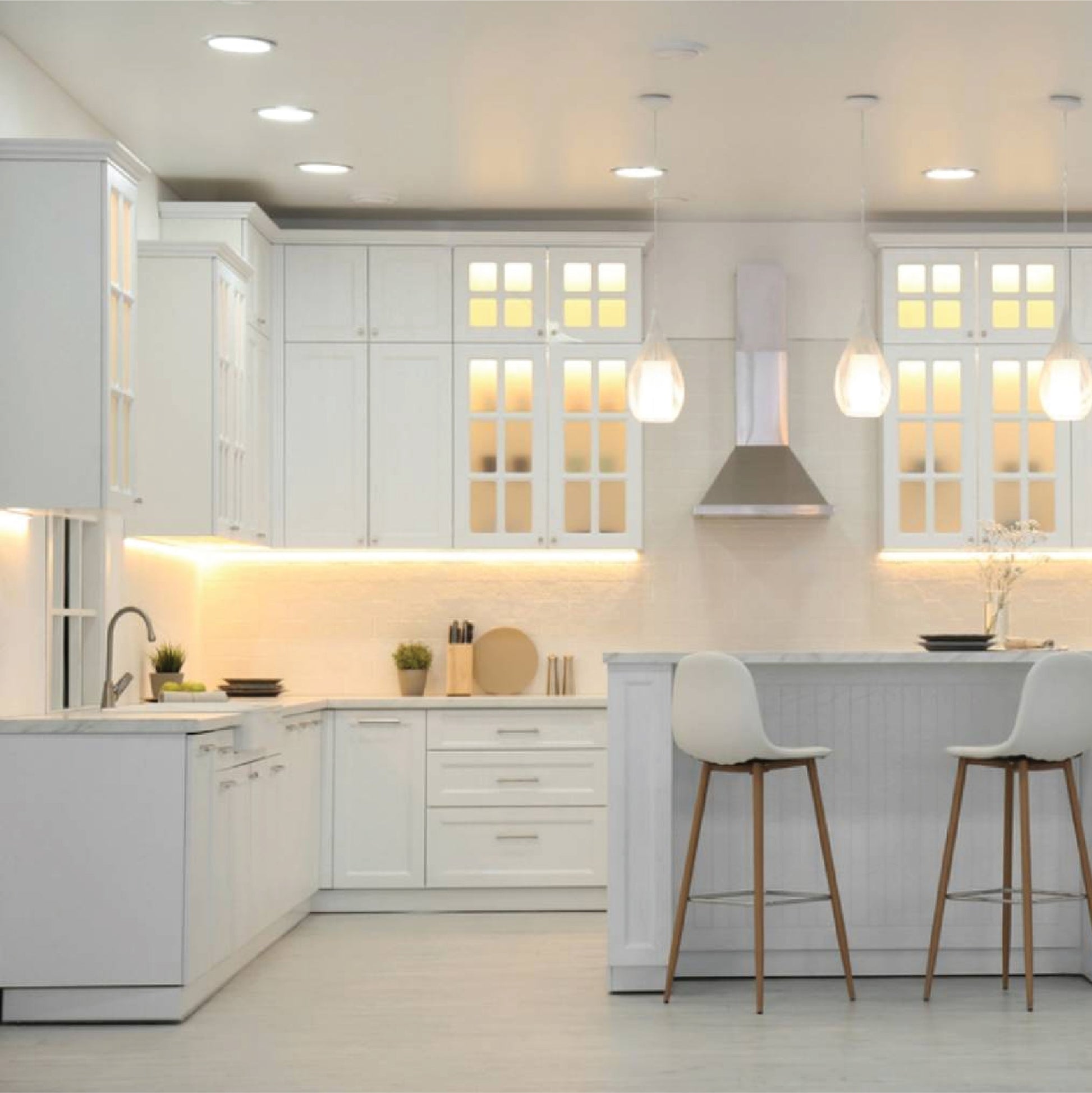 discreet on any ceiling. Its IP44 standard certification making it particularly suitable for spaces like Kitchen, offices, showrooms…