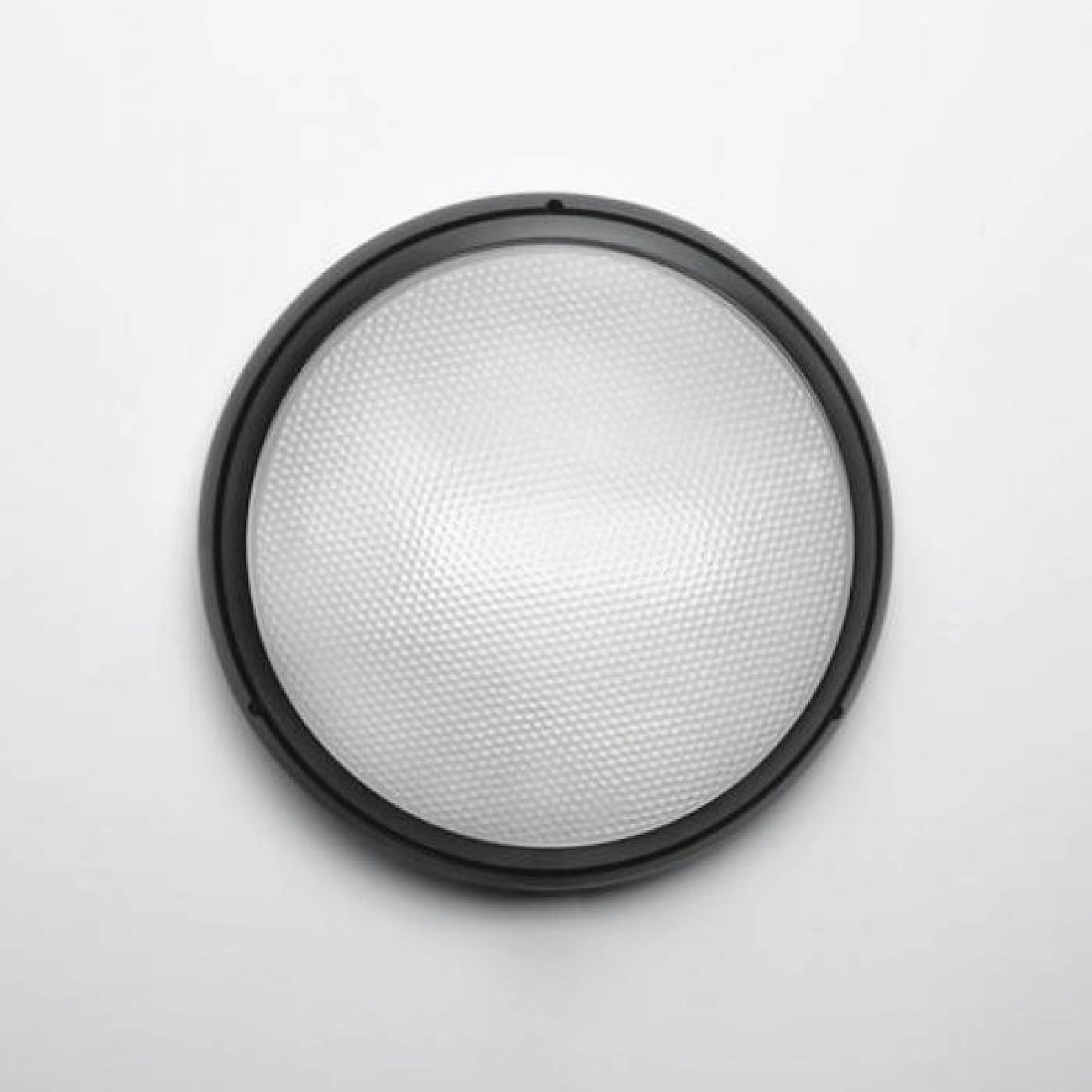 Apply-Ceiling (used only for indoor use). Body and frame of cast aluminum and painted looked transparent. Stainless steel screws and silicone rubber gaskets for a perfect seal. Diffuser in satin molded glass or opal polycarbonate impact resistant. Diffused light emission.